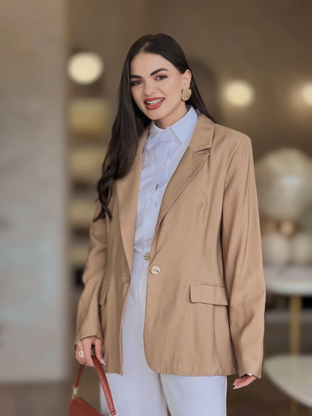 É aquele blazer que funciona tanto para eventos formais quanto para produções casuais. Combine com calça de alfaiataria ou saia para um jantar, reunião ou evento noturno. Para o dia a dia, use com jeans, regata básica e tênis — e ainda assim vai estar bem vestida.
