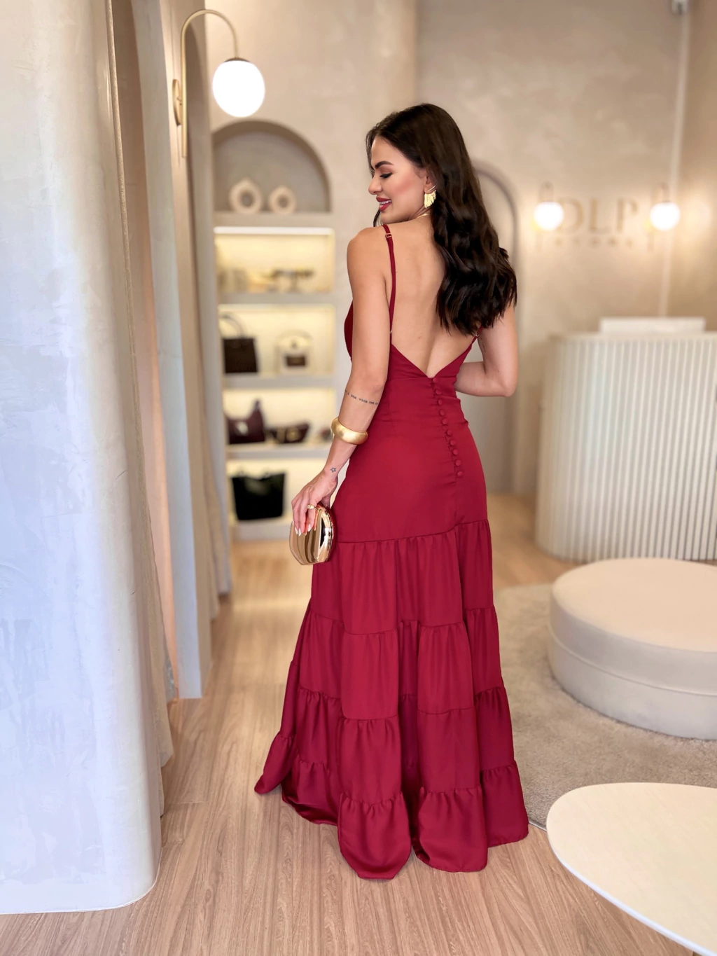O vestido dos seus sonhos! Com um caimento perfeito e um detalhe encantador nas costas, este vestido longo é a combinação ideal de conforto e estilo.